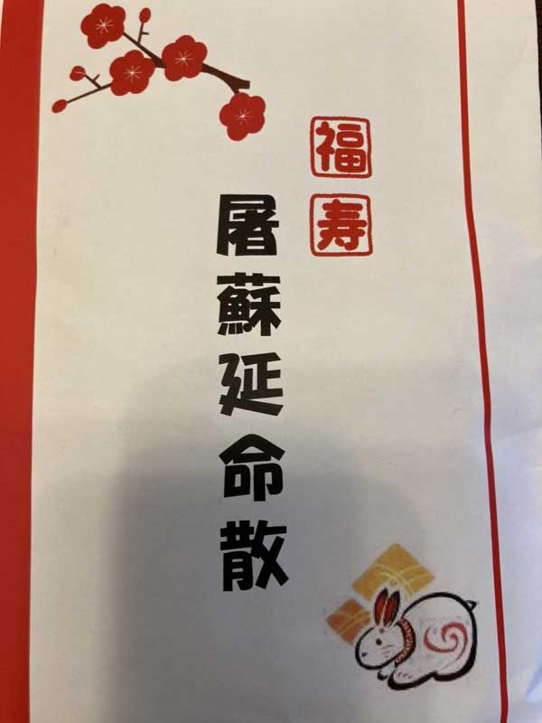 屠蘇は漢方薬という話に戻りますが、漢方とは中国系伝統医学を日本の風土環境や日本人の体質気質に合わせ日本でアレンジされた伝統医学である。という理解が正しいのだと学びました。私は、毎年薬局に売っている医薬品分類に含まれた屠蘇散を買い求め使用していました。